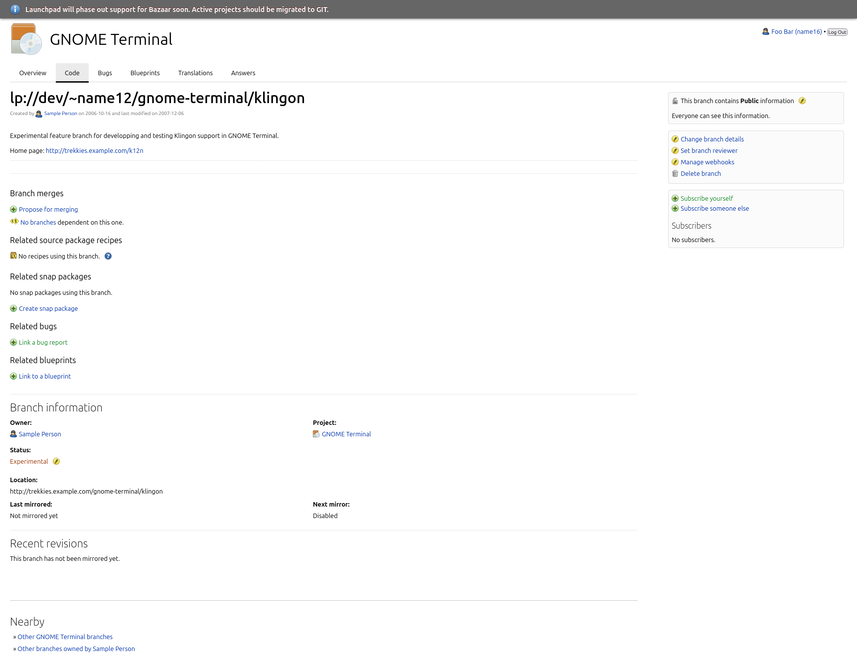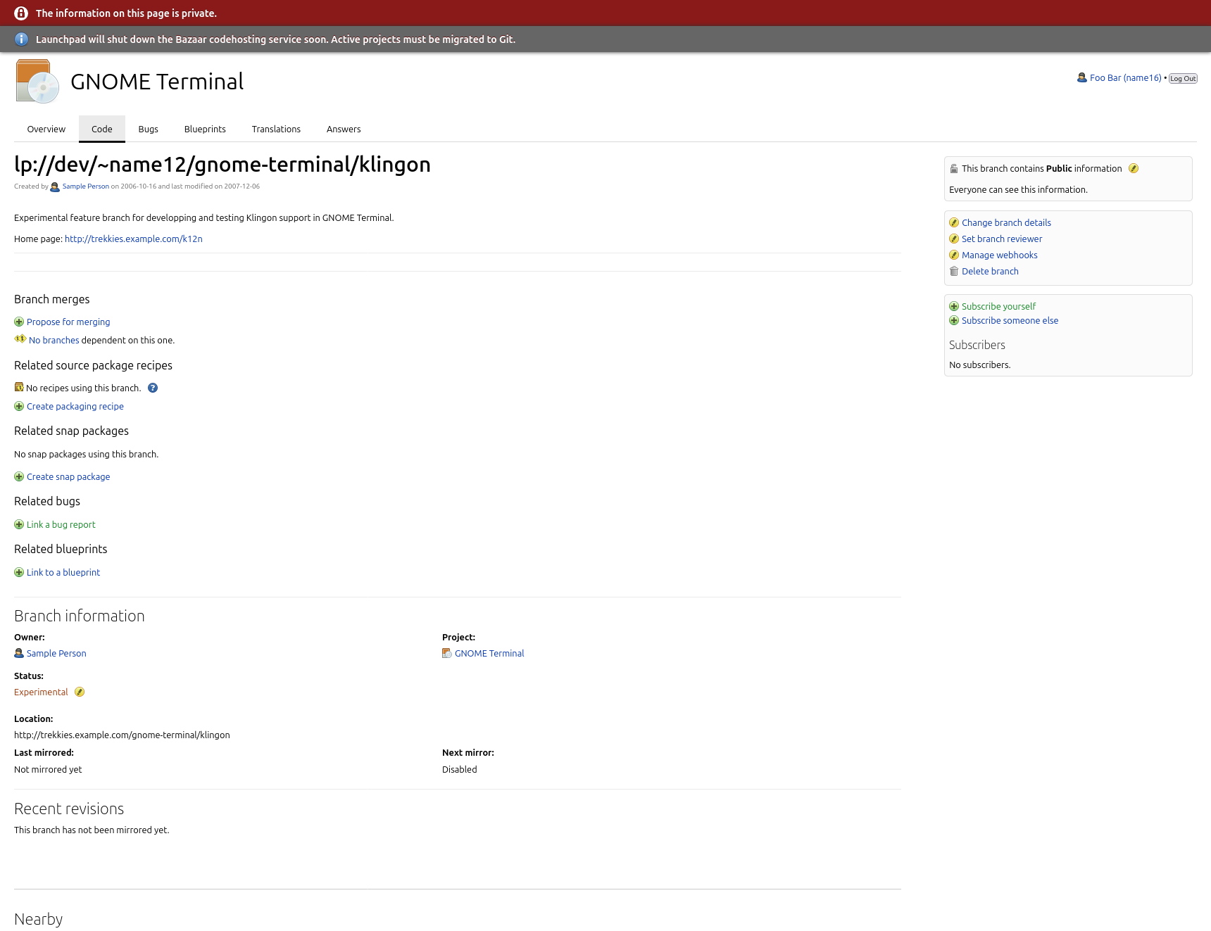 Creates a bazaar warning banner for bazaar project pages and the "All branches" page.